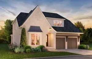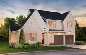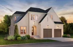 The Abingdon Plan starts at $995,000 with the size of the home running between 3,014-3,508 sq. ft depending on options chosen. Custom options can include a 1st floor guest suite, a wine cellar, and an outdoor fireplace. The home features classic architecture with European influences such as carriage style garage doors with overlay panels and old brick pavers.