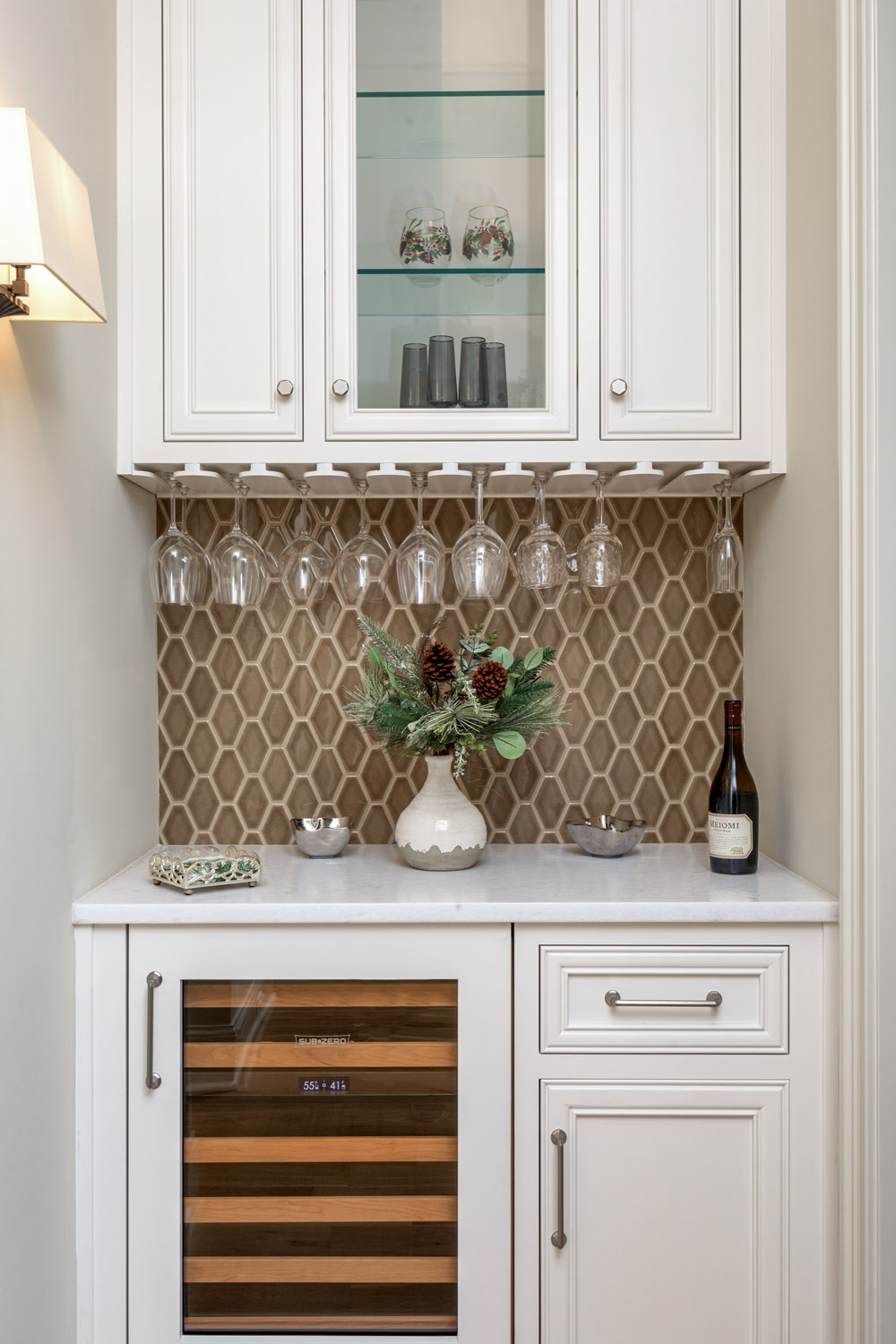 This custom home located in Phase II of Heydon Hall was a newly designed plan that was designed just for this buyer. The exterior of this home is Palmetto Riviera brick with bronze accents. Bottega countertops were used throughout several rooms in the homes including the kitchen and bathrooms. The great room includes a full height brick fireplace surround.