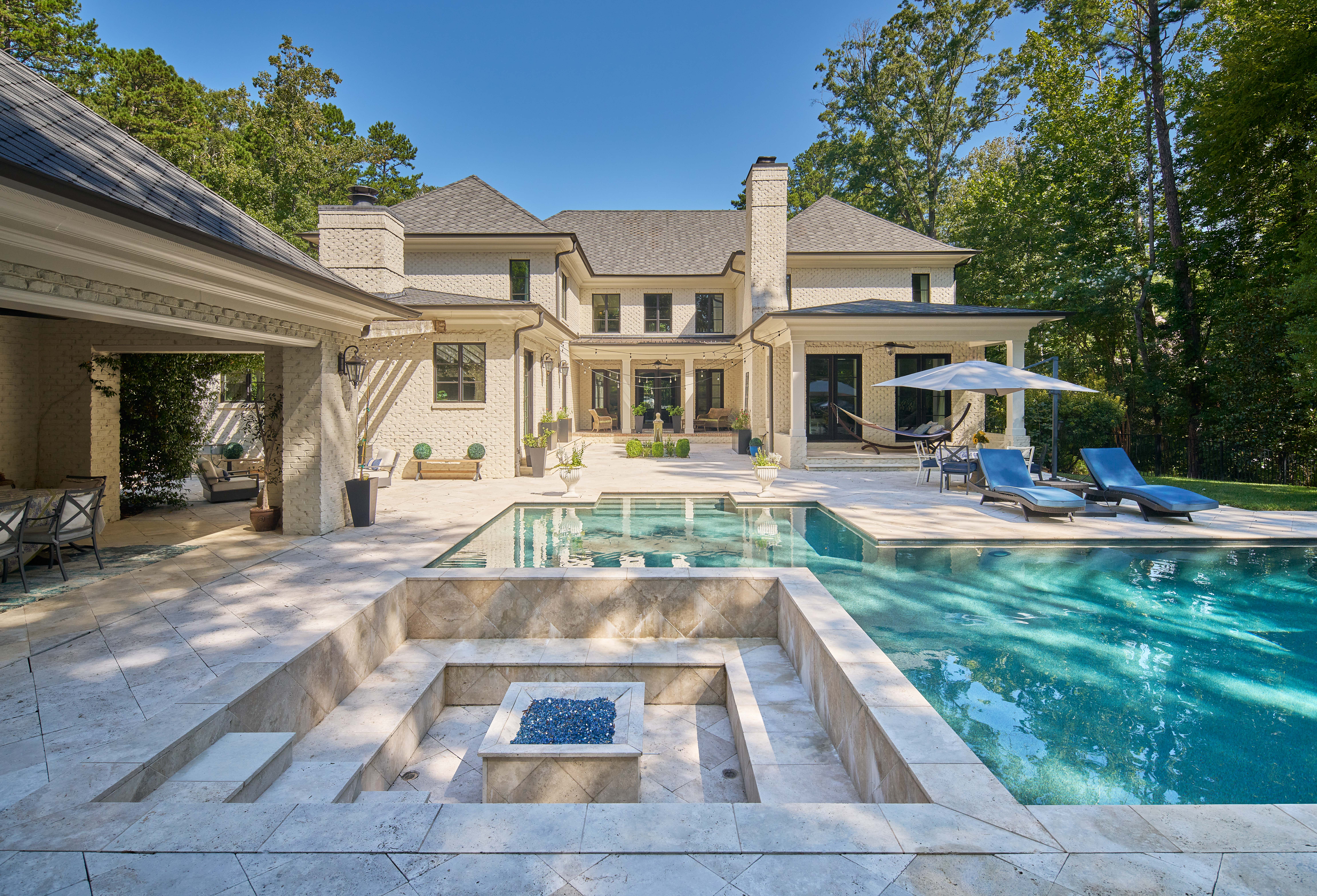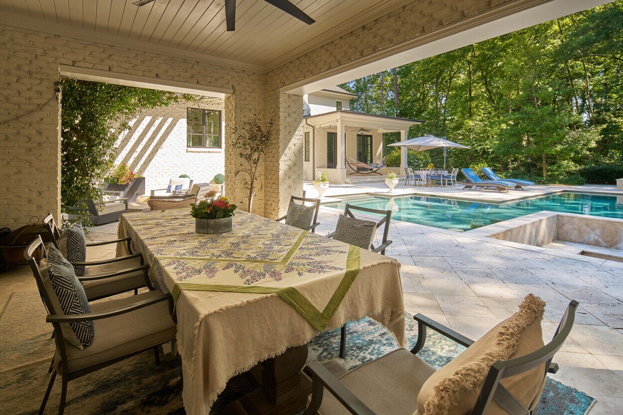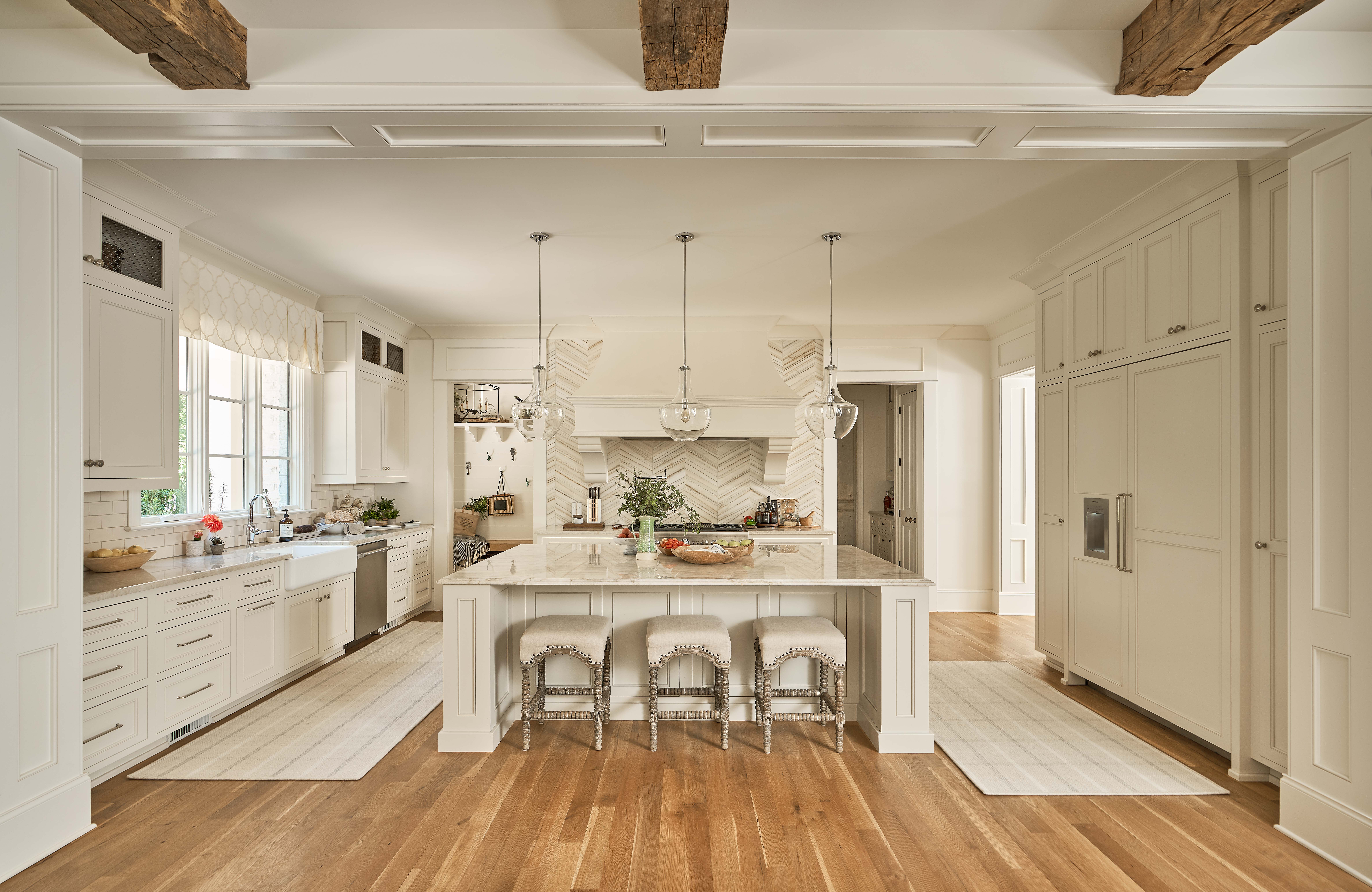 This Classic Modern home was designed with an open floor plan that incorporates outdoor living. Exposed wooden beams grace the ceiling and make a statement.