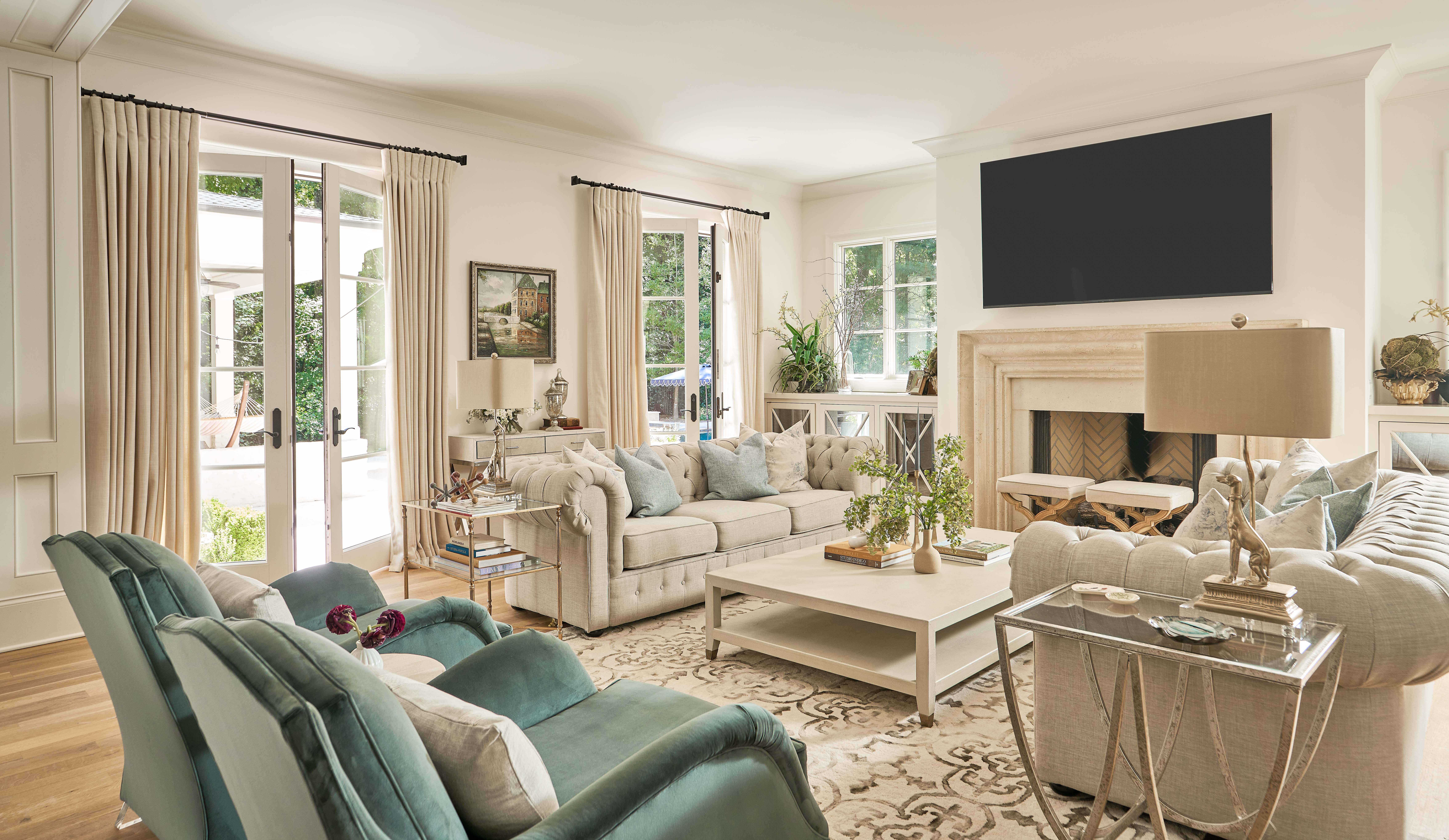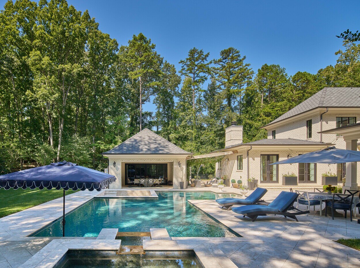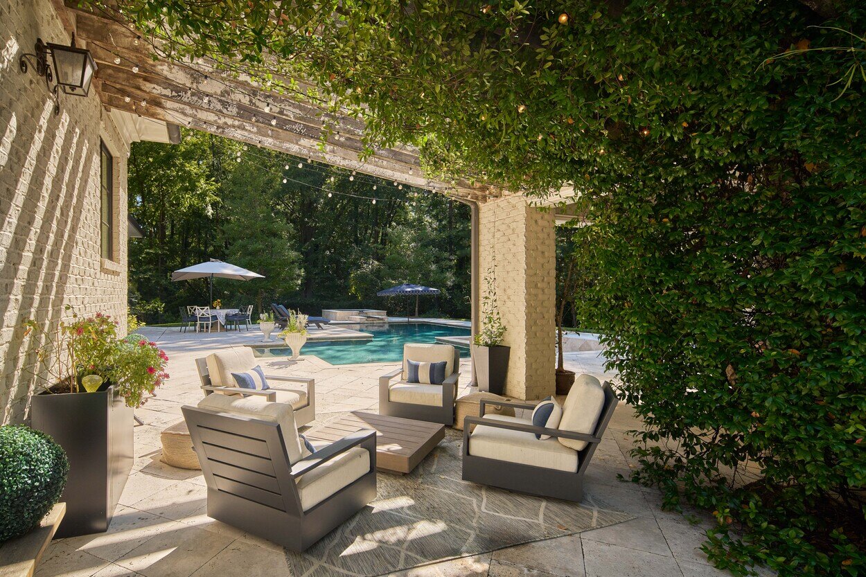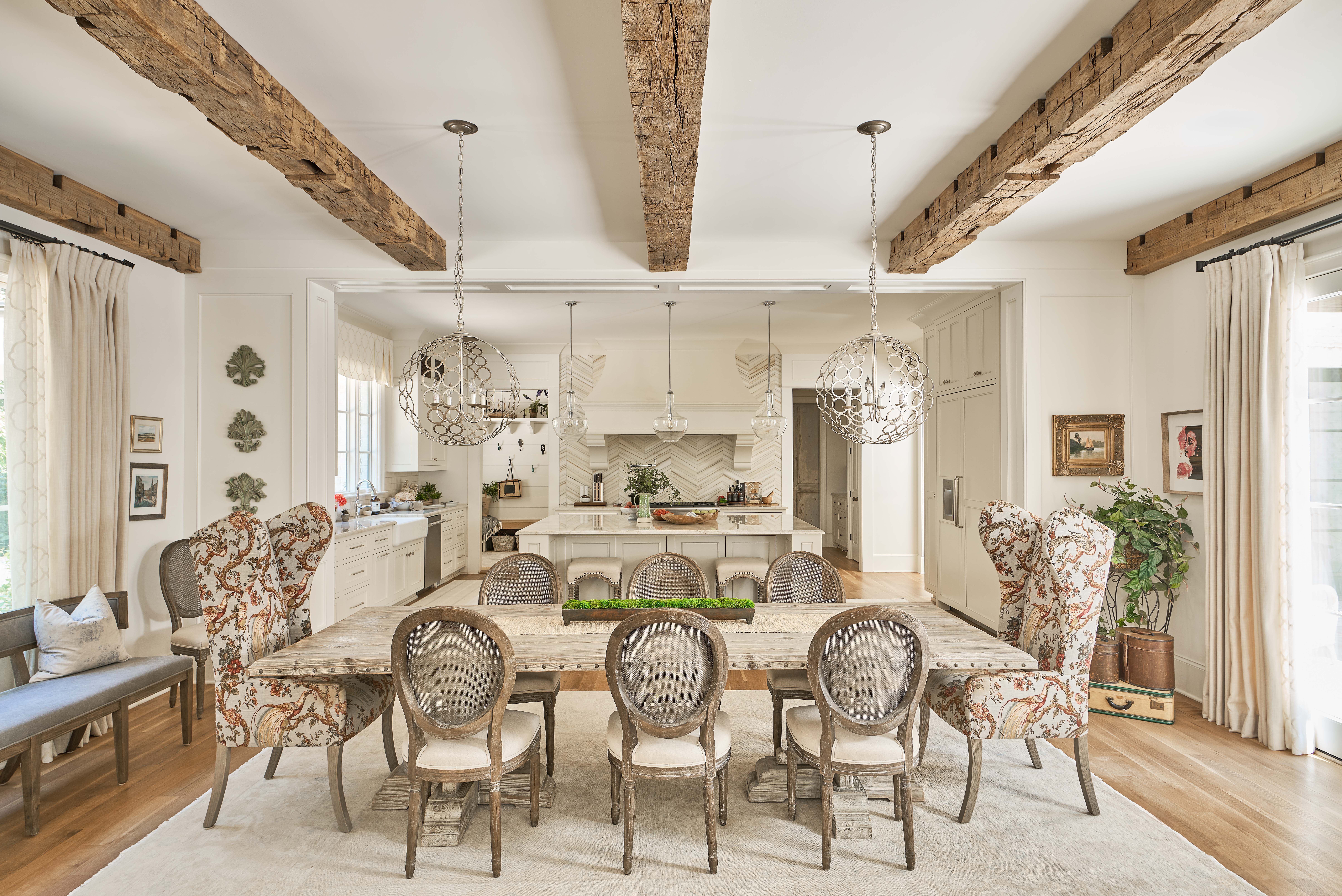 This Classic Modern home was designed with an open floor plan that incorporates outdoor living. Exposed wooden beams grace the ceiling and make a statement.