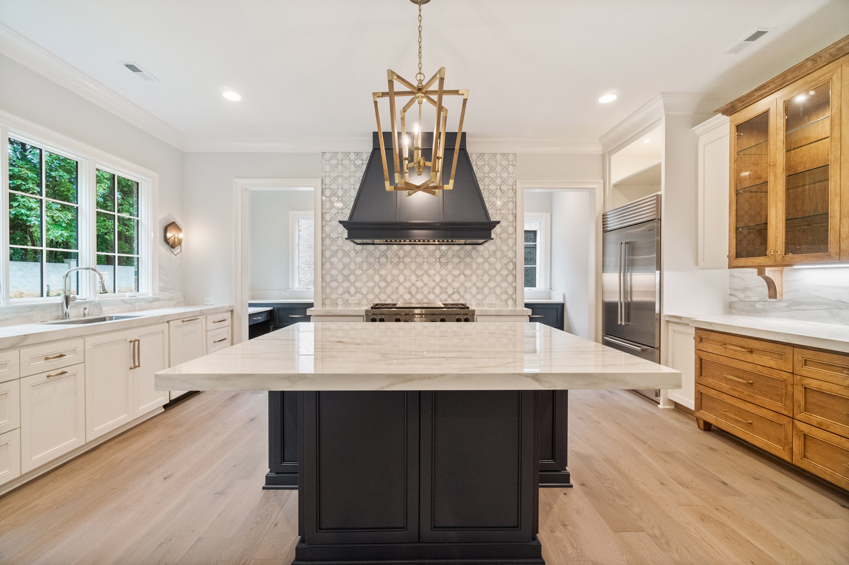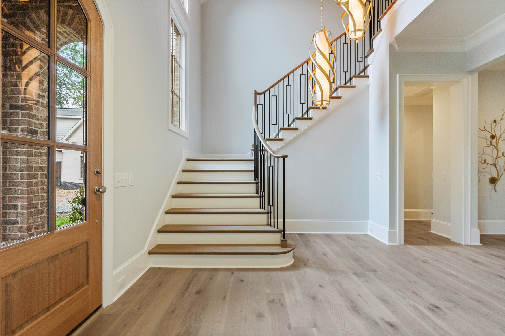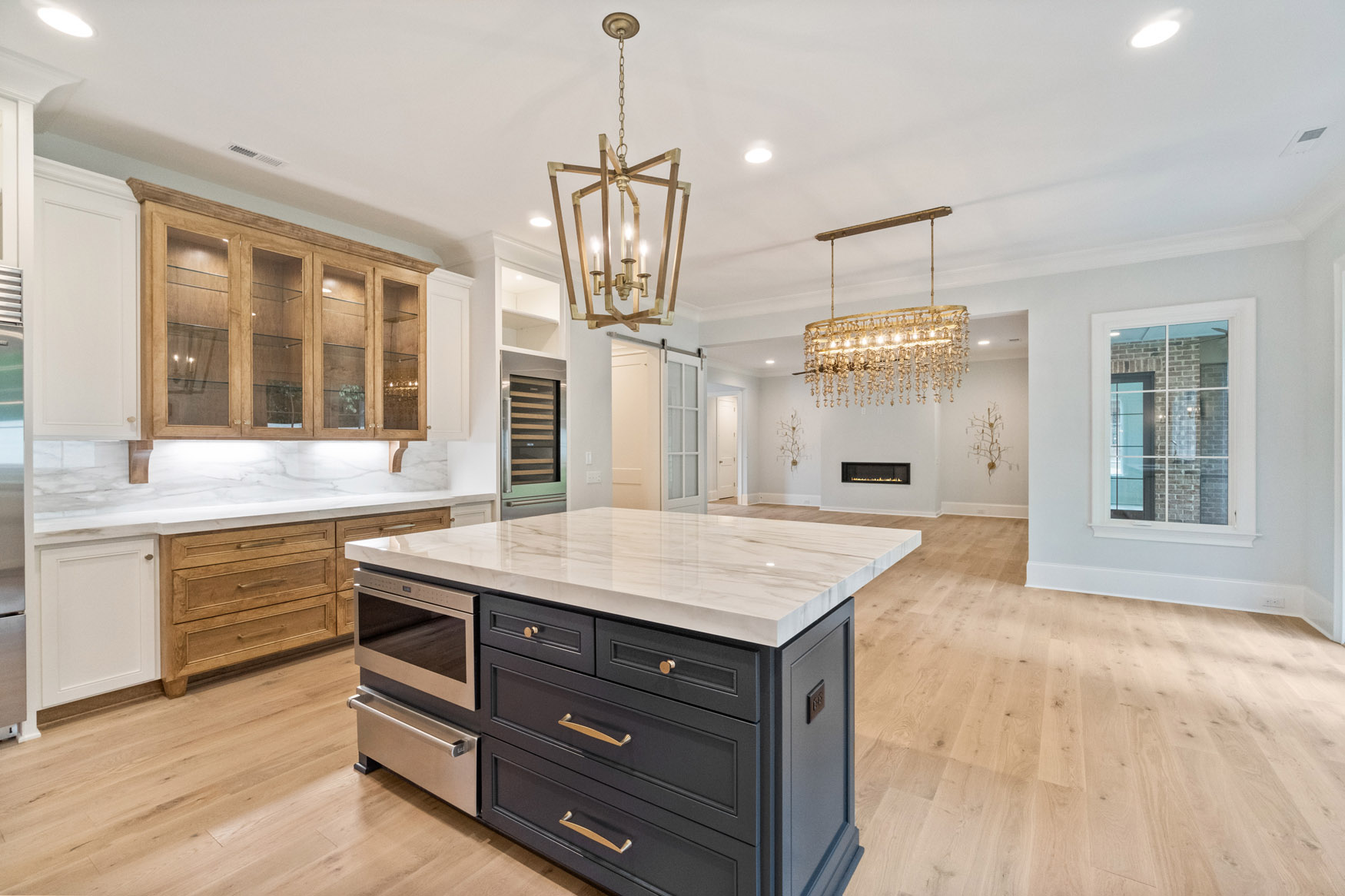 The Enclave at Foxcroft - This home is filled with white oak stair treads to match the Palmetto Monet Orleans hardwood floor throughout. The client selected Bianco Jewel Quartize countertops and have upgraded to Wolf and Sub-Zero appliances.
