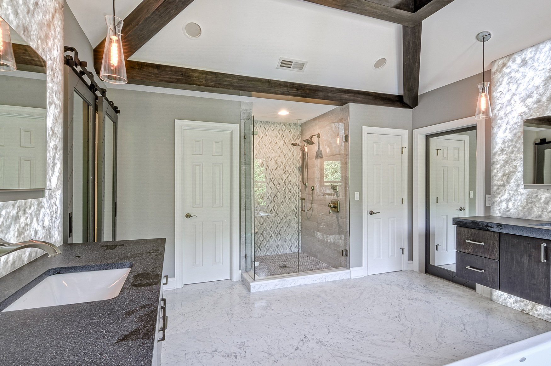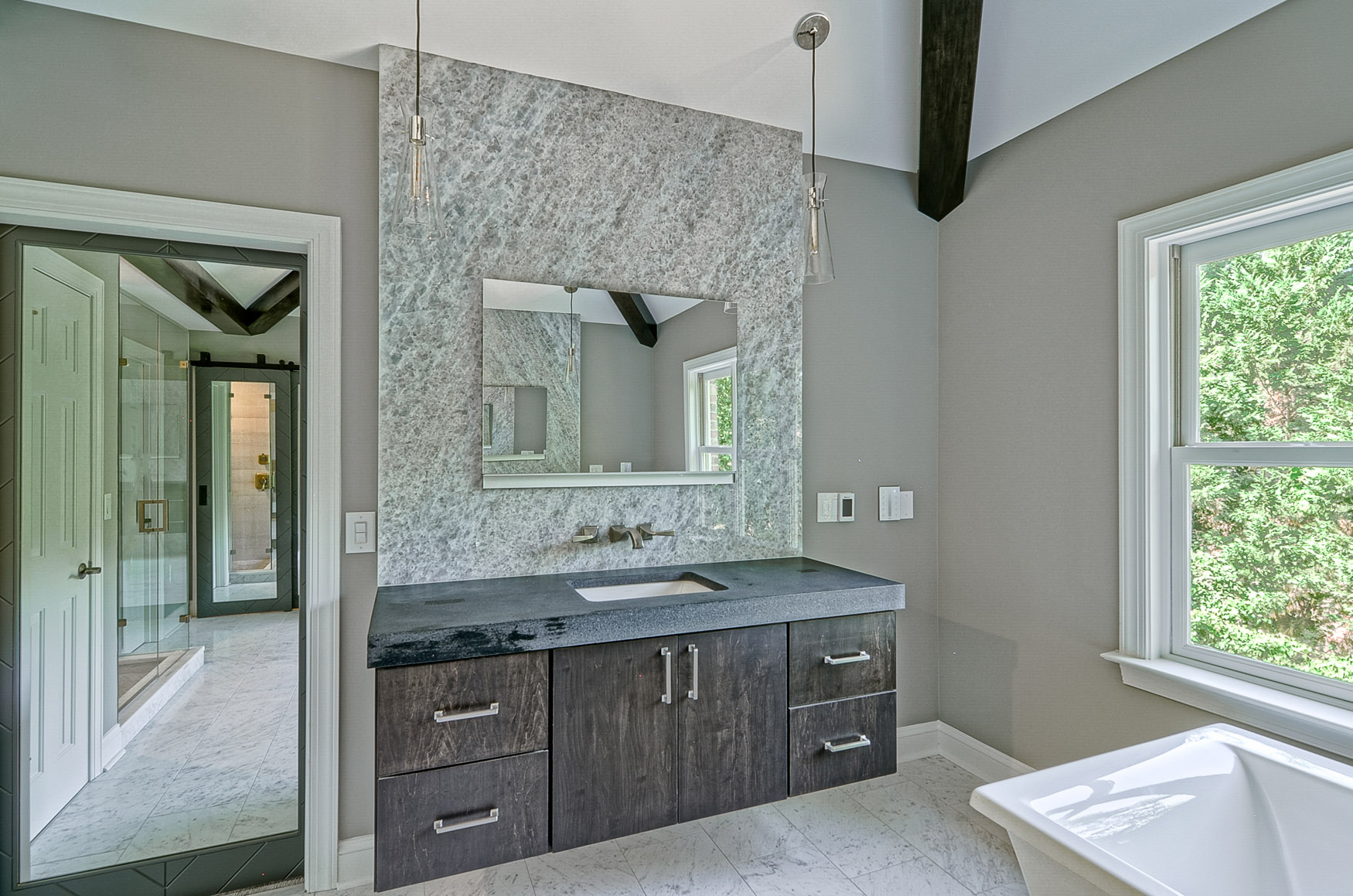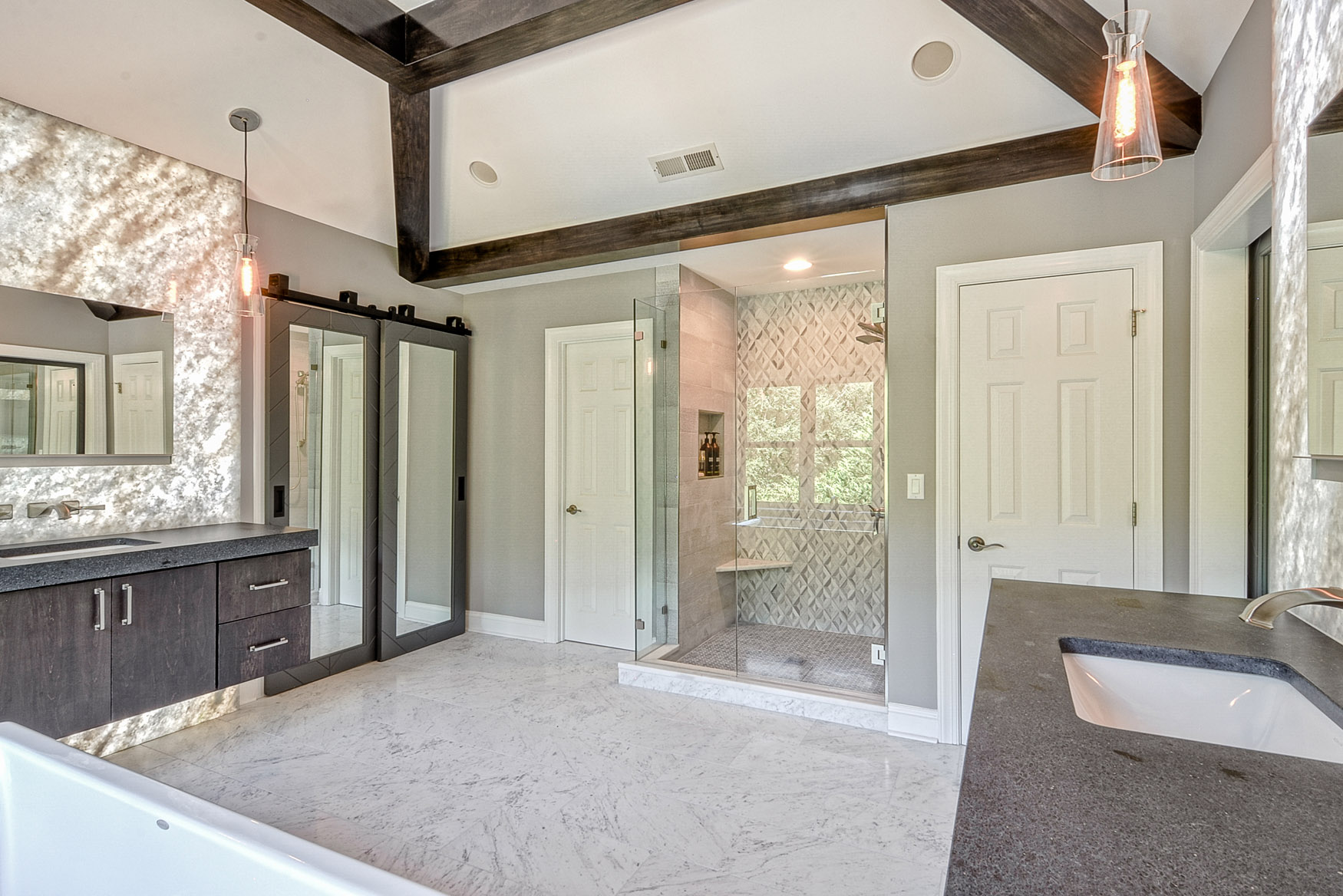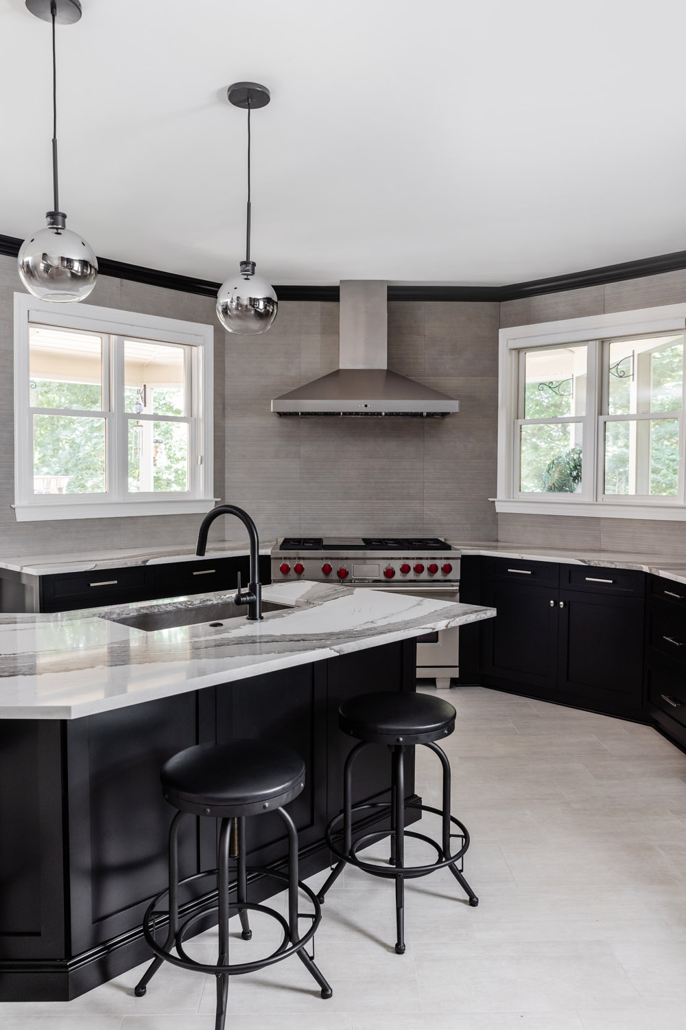 This original home was very traditional and outdated. The homeowners that bought the house had a very unique and modern taste. They wanted the home to reflect their funky aesthetic, so we renovated their kitchen and primary bath with an achromatic color scheme.
