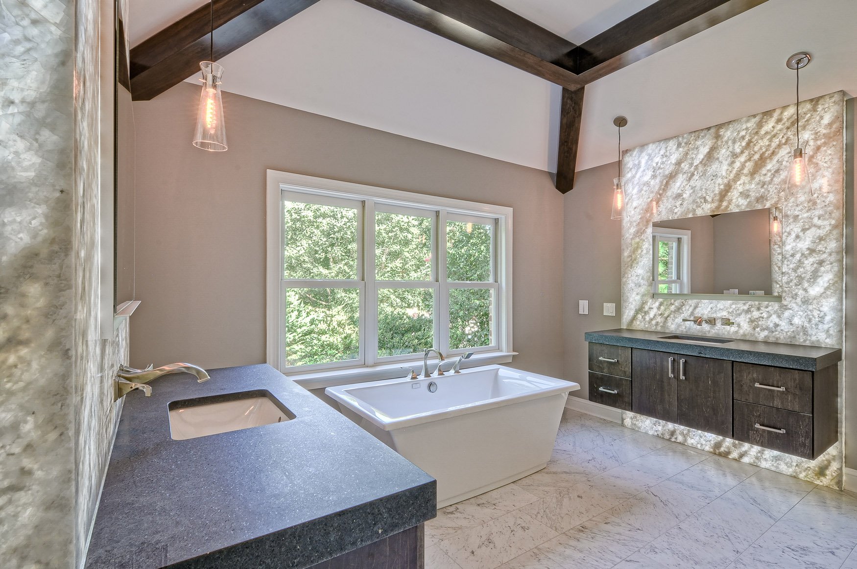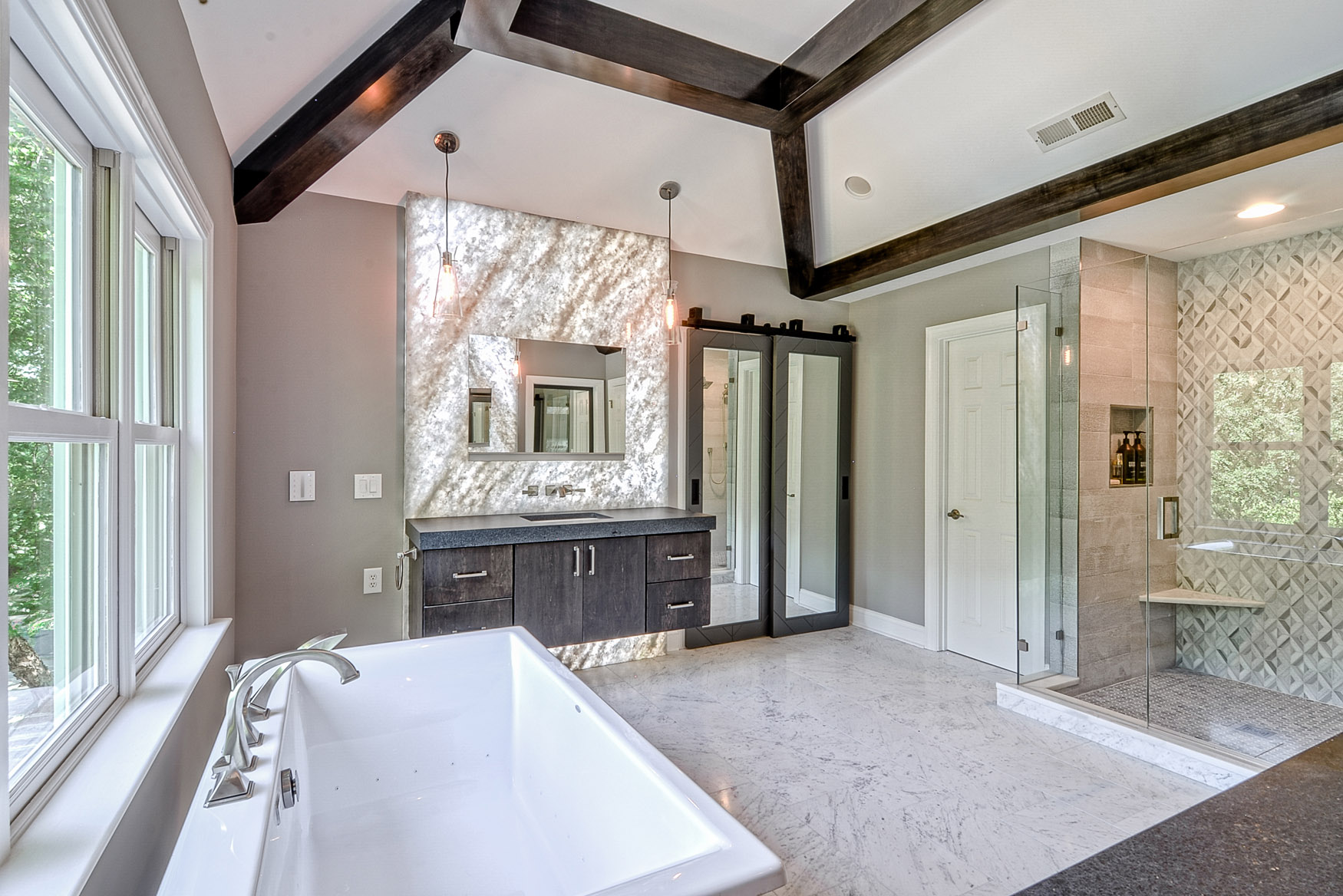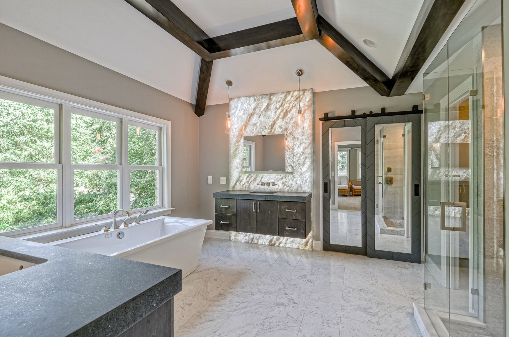 This original home was very traditional and outdated. The homeowners that bought the house had a very unique and modern taste. They wanted the home to reflect their funky aesthetic, so we renovated their kitchen and primary bath with an achromatic color scheme.