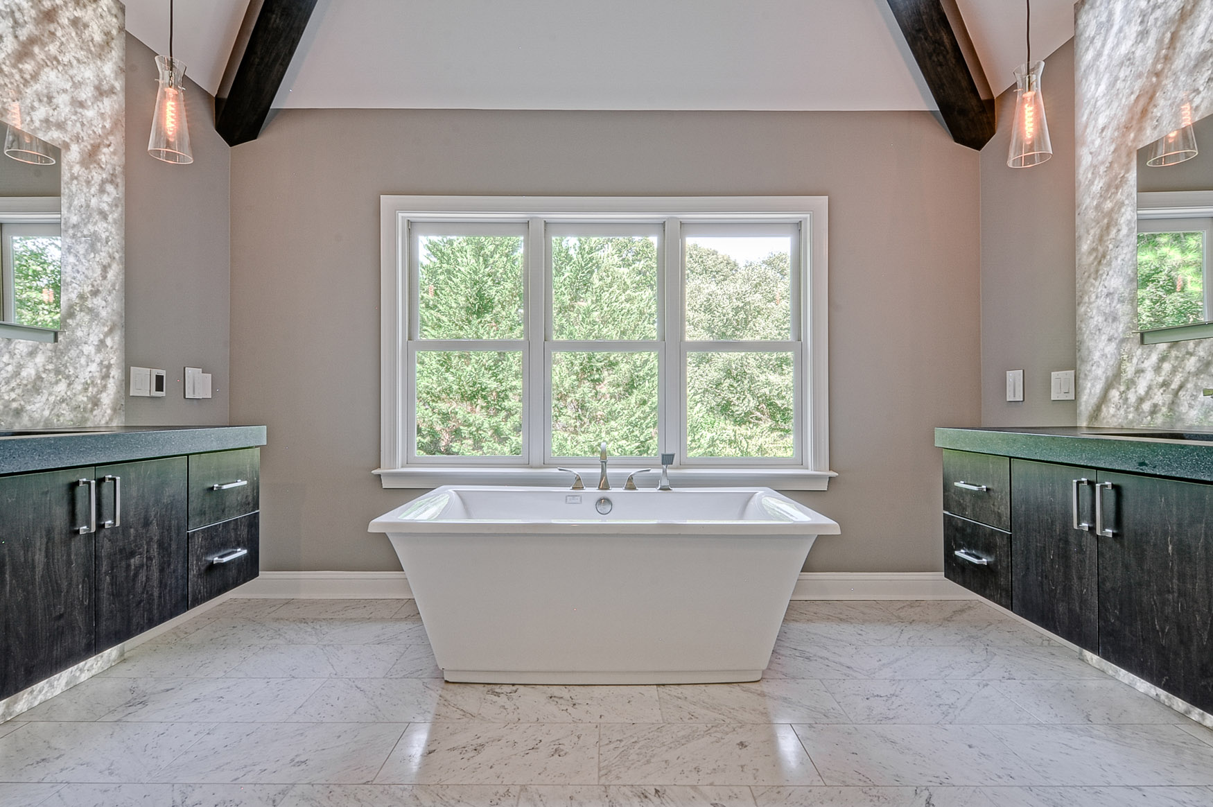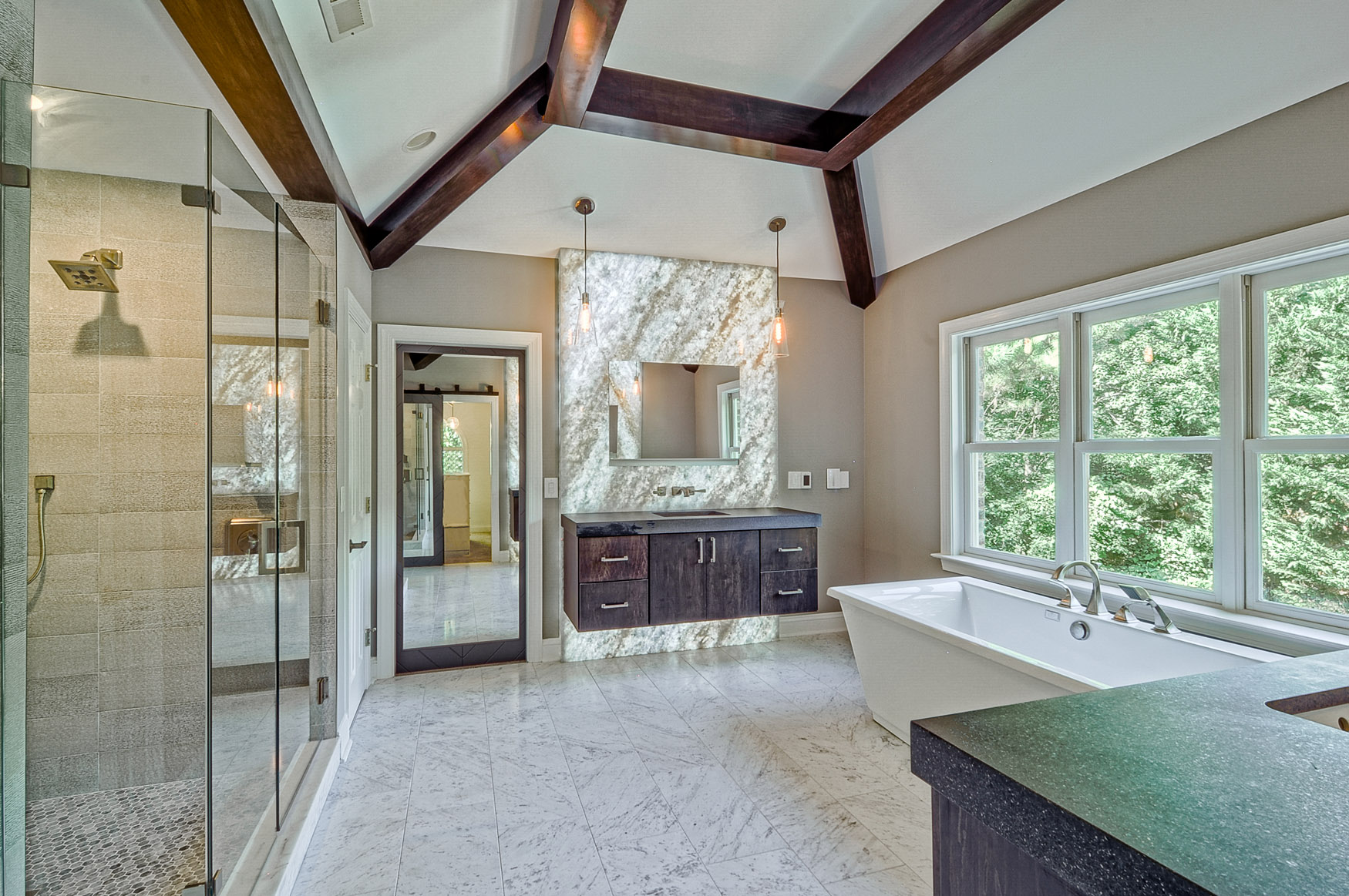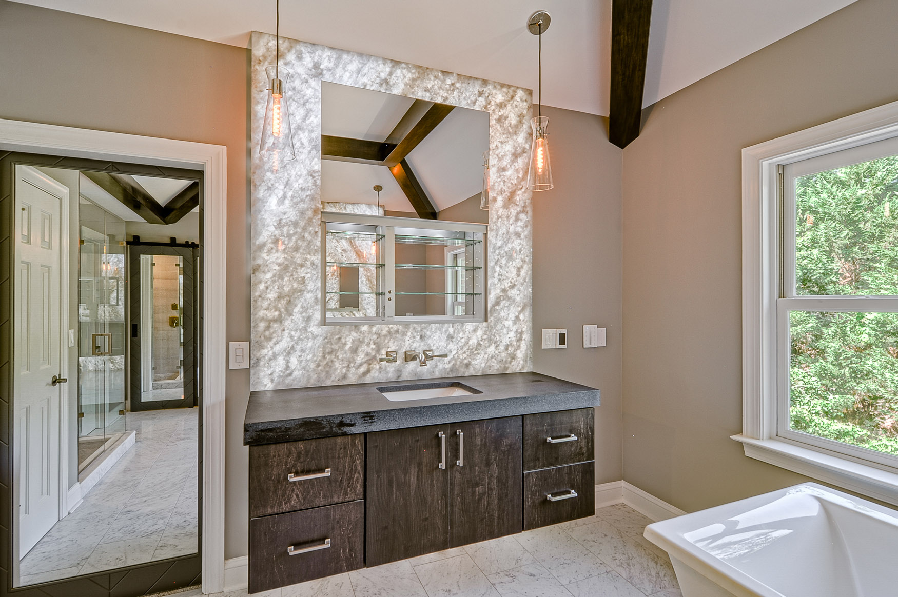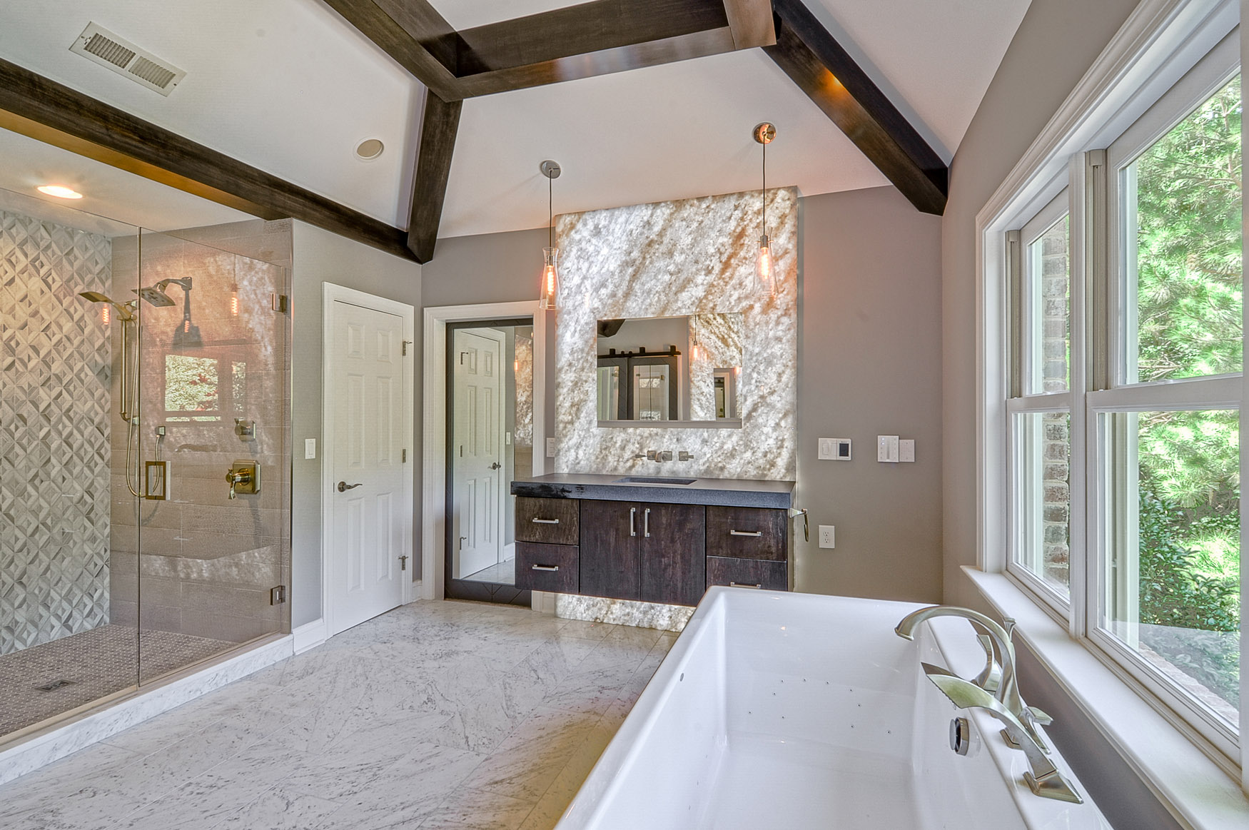 This original home was very traditional and outdated. The homeowners that bought the house had a very unique and modern taste. They wanted the home to reflect their funky aesthetic, so we renovated their kitchen and primary bath with an achromatic color scheme.