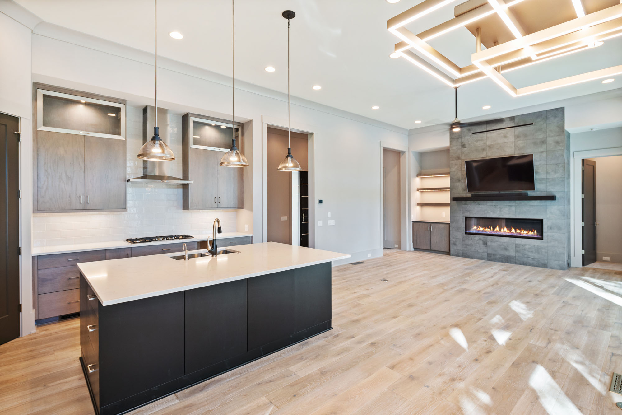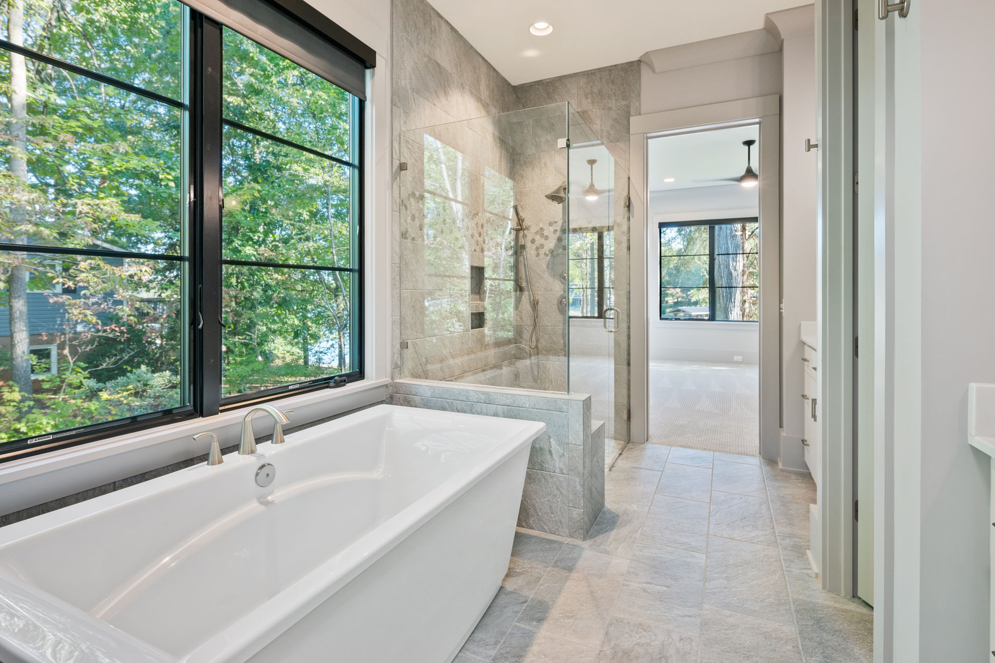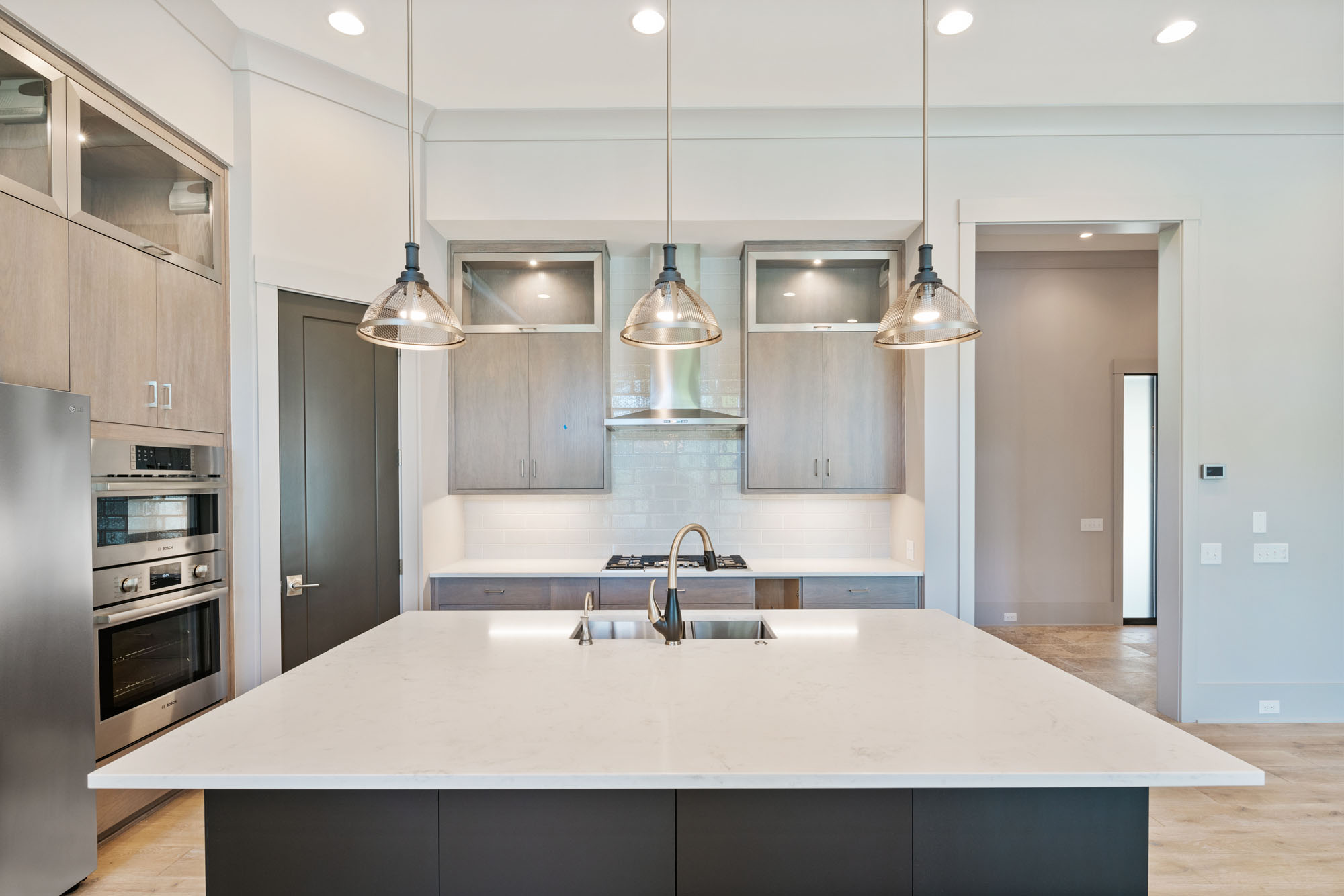 Sandset pavers invite you to this Modern waterfront home that overlooks Lake Norman. The kitchen has a tremendous amount of natural light, accompanied by custom European cabinetry.