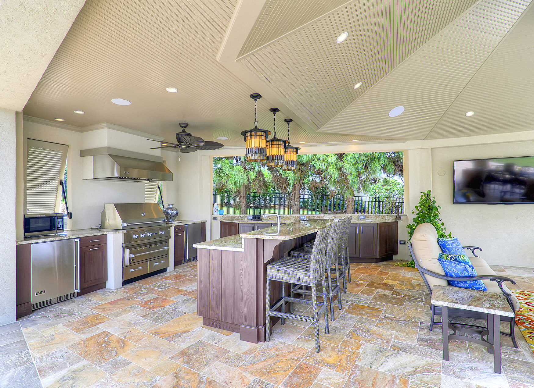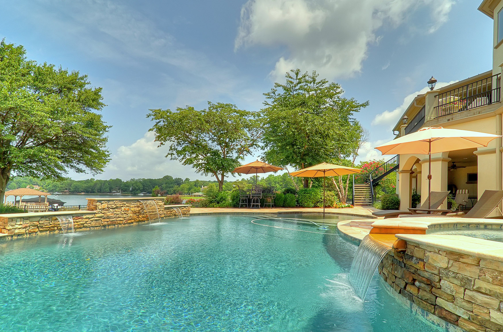 This renovation started as and expansion of the home and creating a larger footprint. During the process, the client decided they wanted to extend the renovation to the backyard. The renovation includes a cabana, grilling station, pool and built-in firepit overlooking the beautiful Lake Norman.