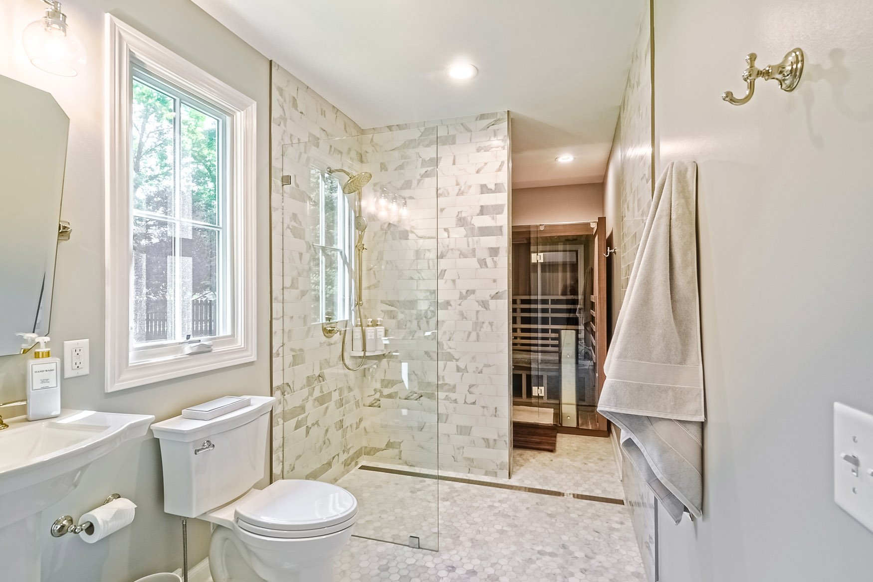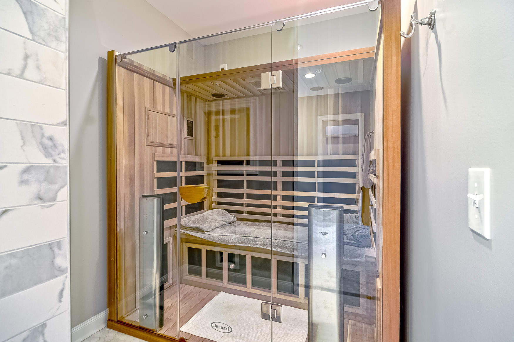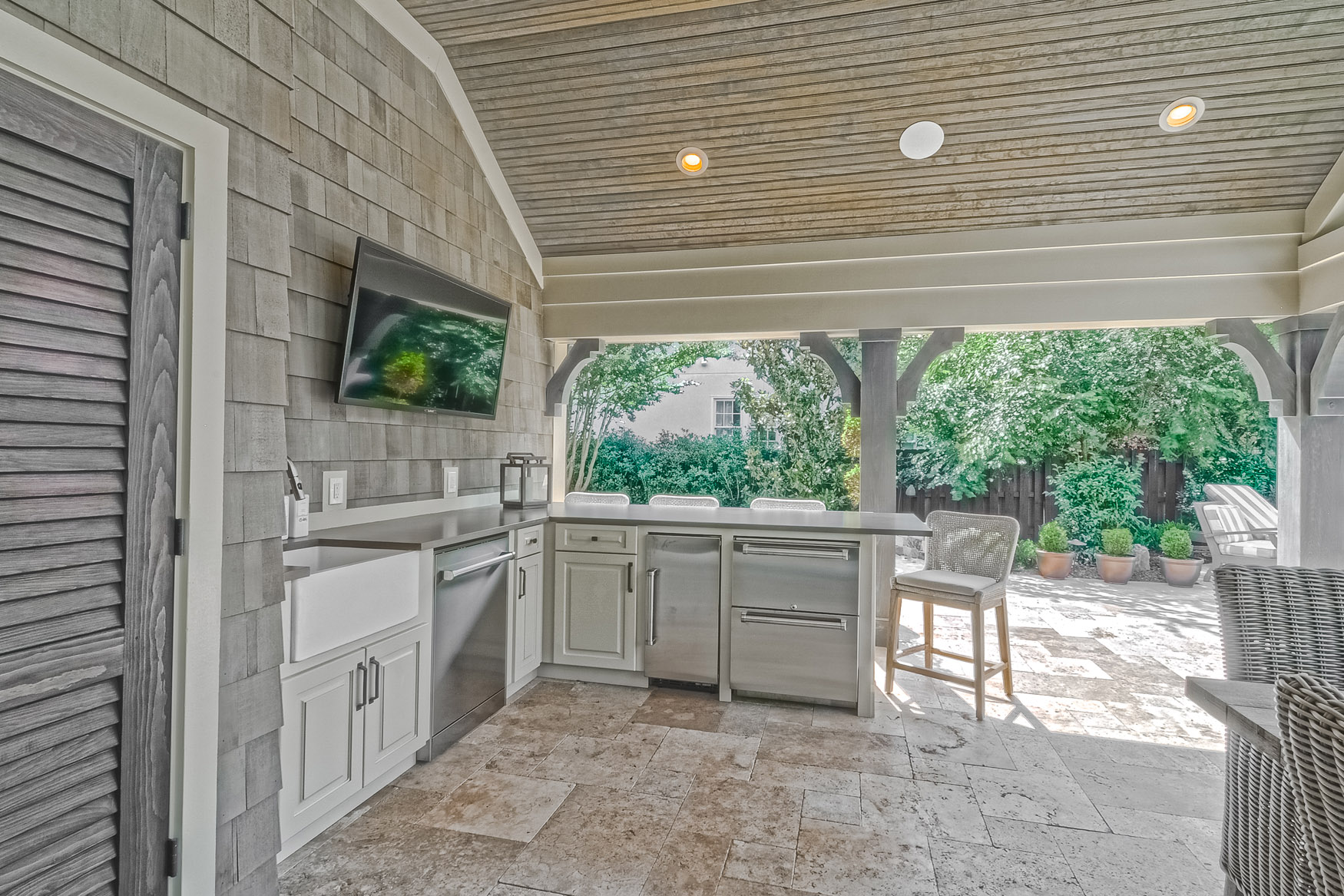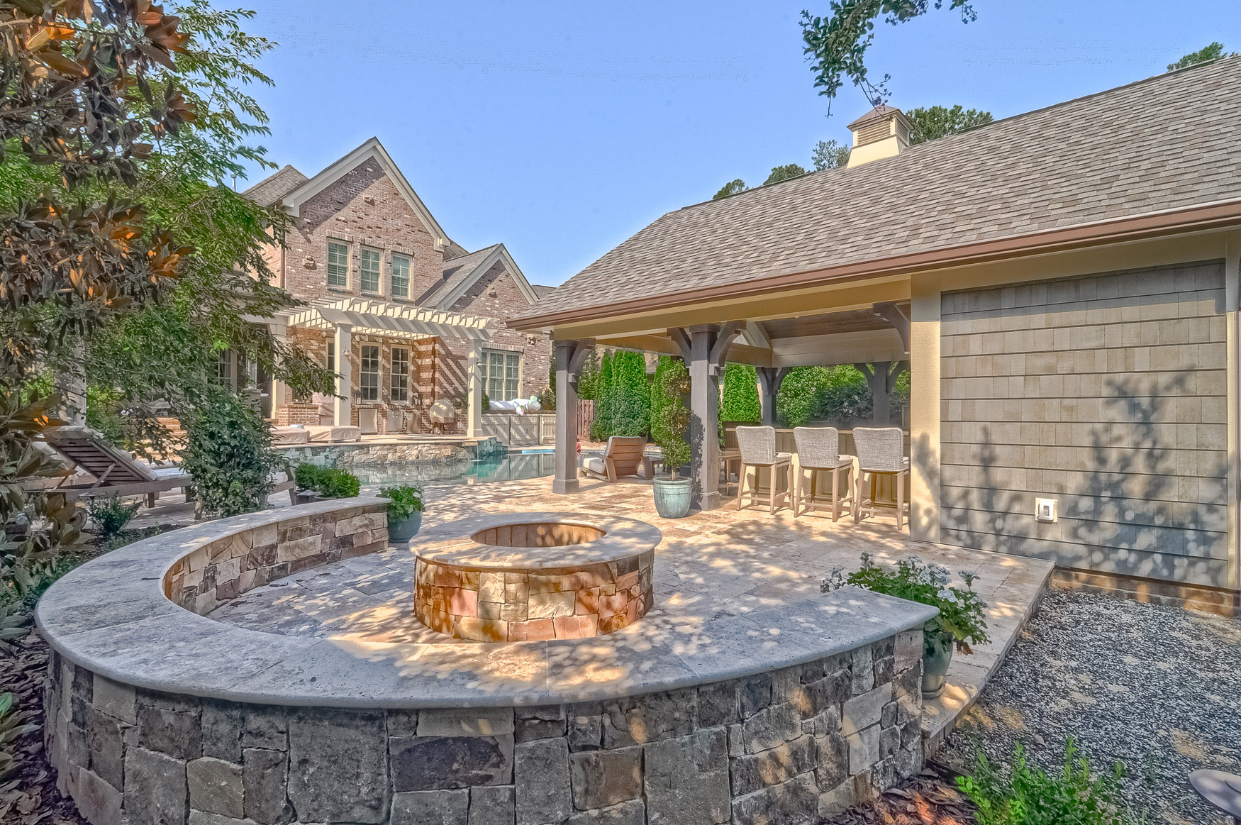 This renovation consisted of building a cabana and pool area. The clients wanted to create a space they could escape to. The cabana functions as a yoga/exercise studio and includes a full bath with a sauna, an outdoor kitchen and built-in fire pit.