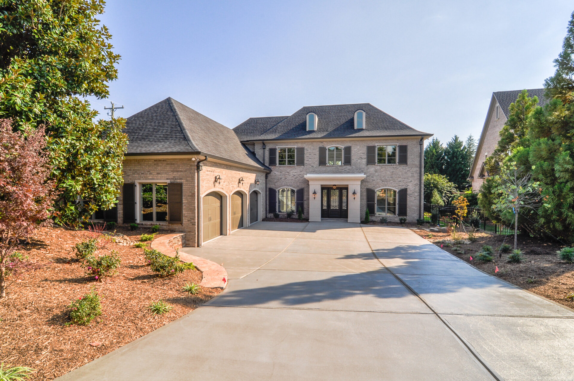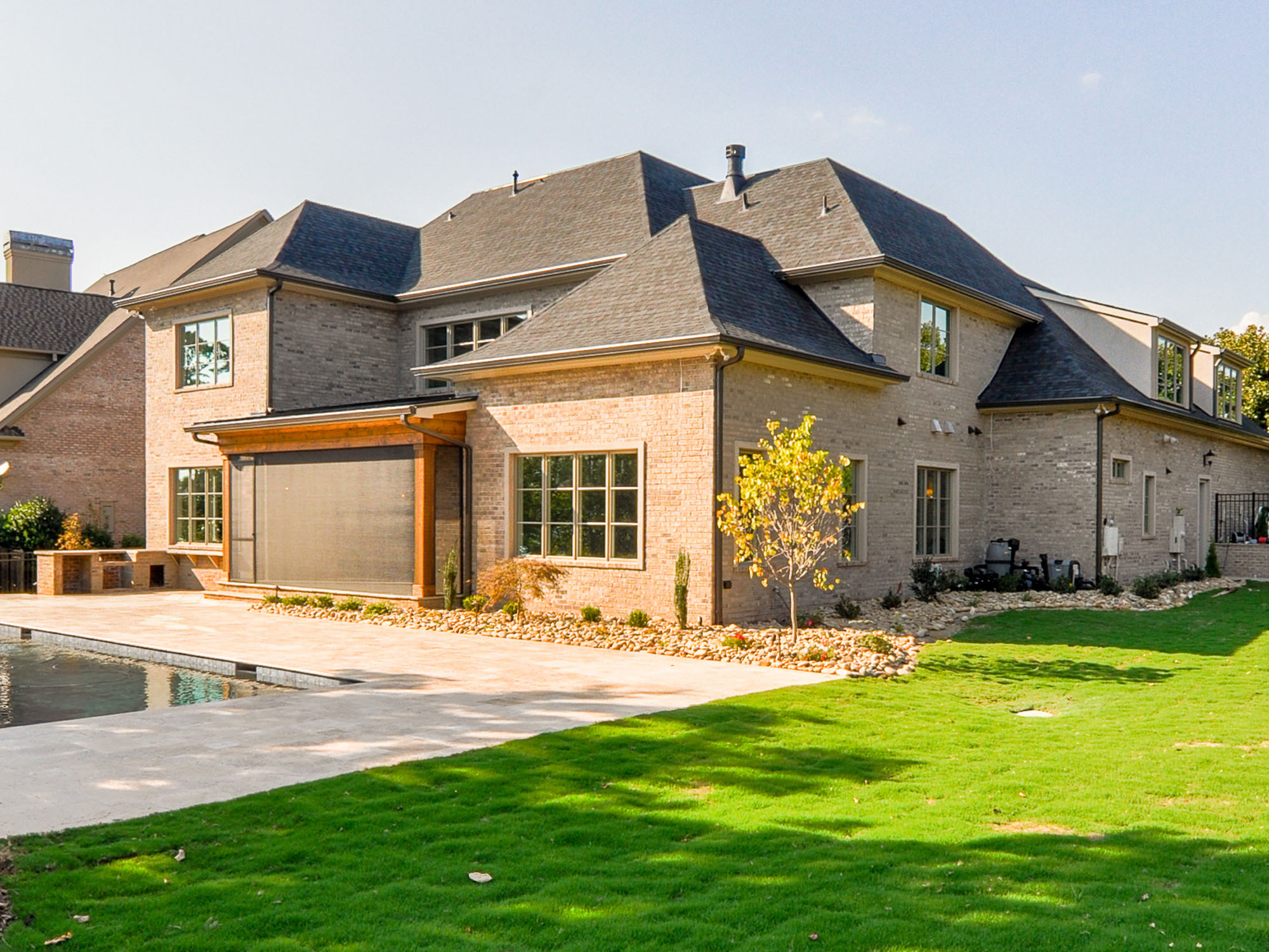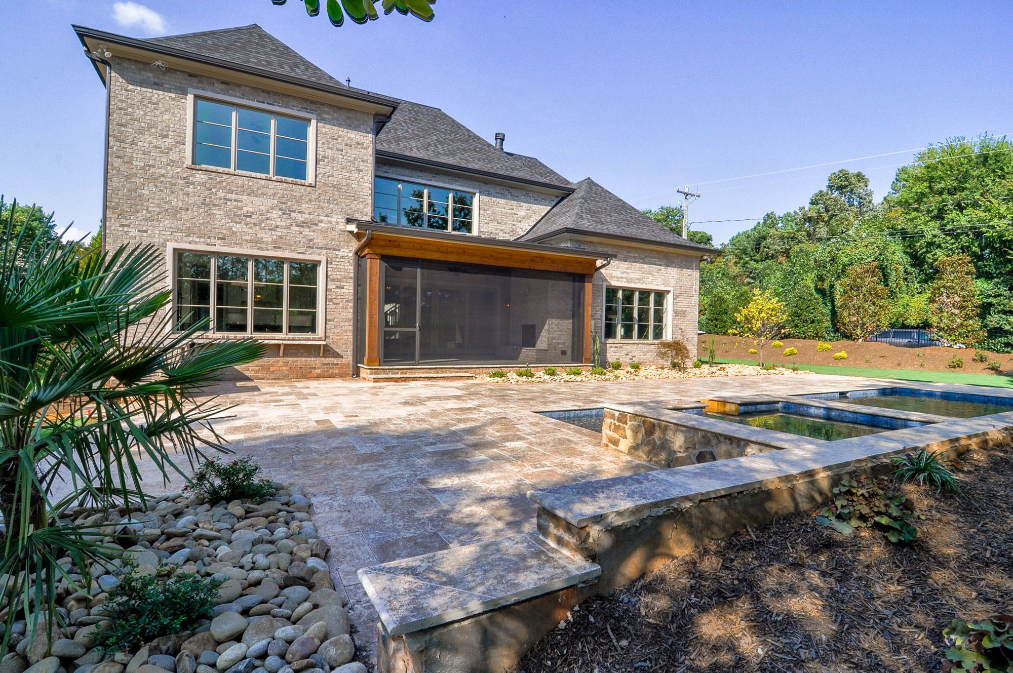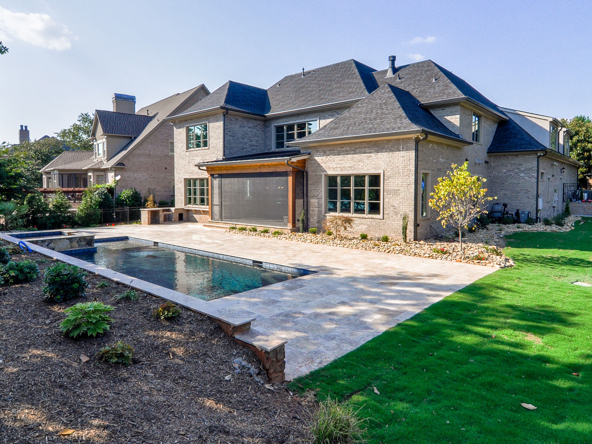 The exterior of this home includes several natural materials including wood, brick, and stone. This Traditional Custom home is a very spacious floor plan with a study, built-in bar, screened-in porch and a pool.