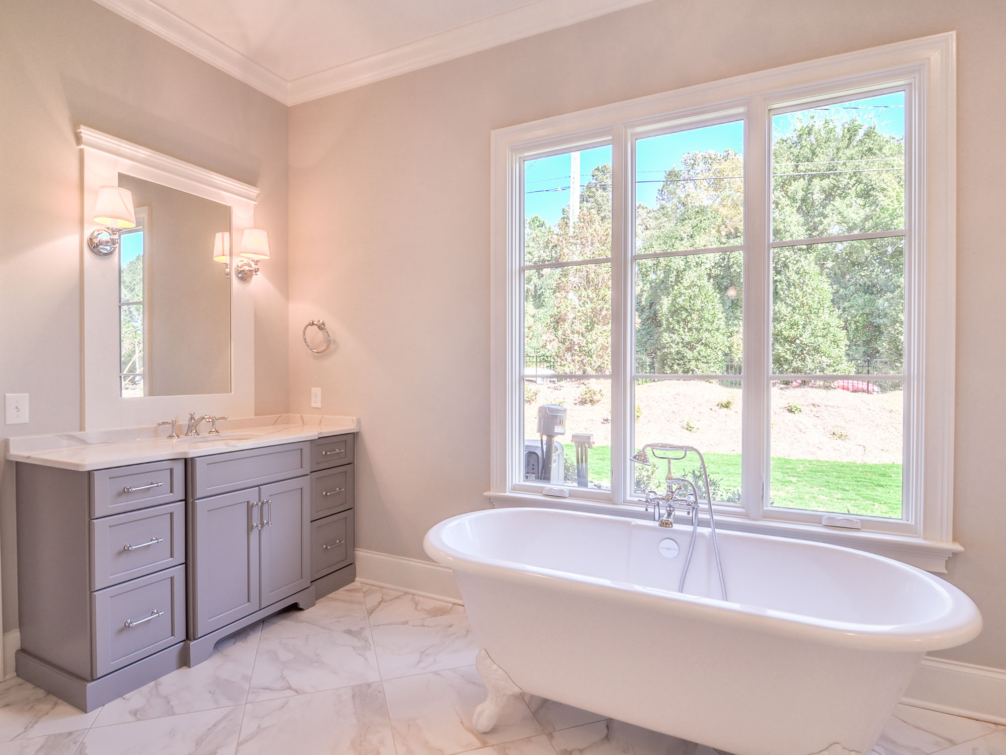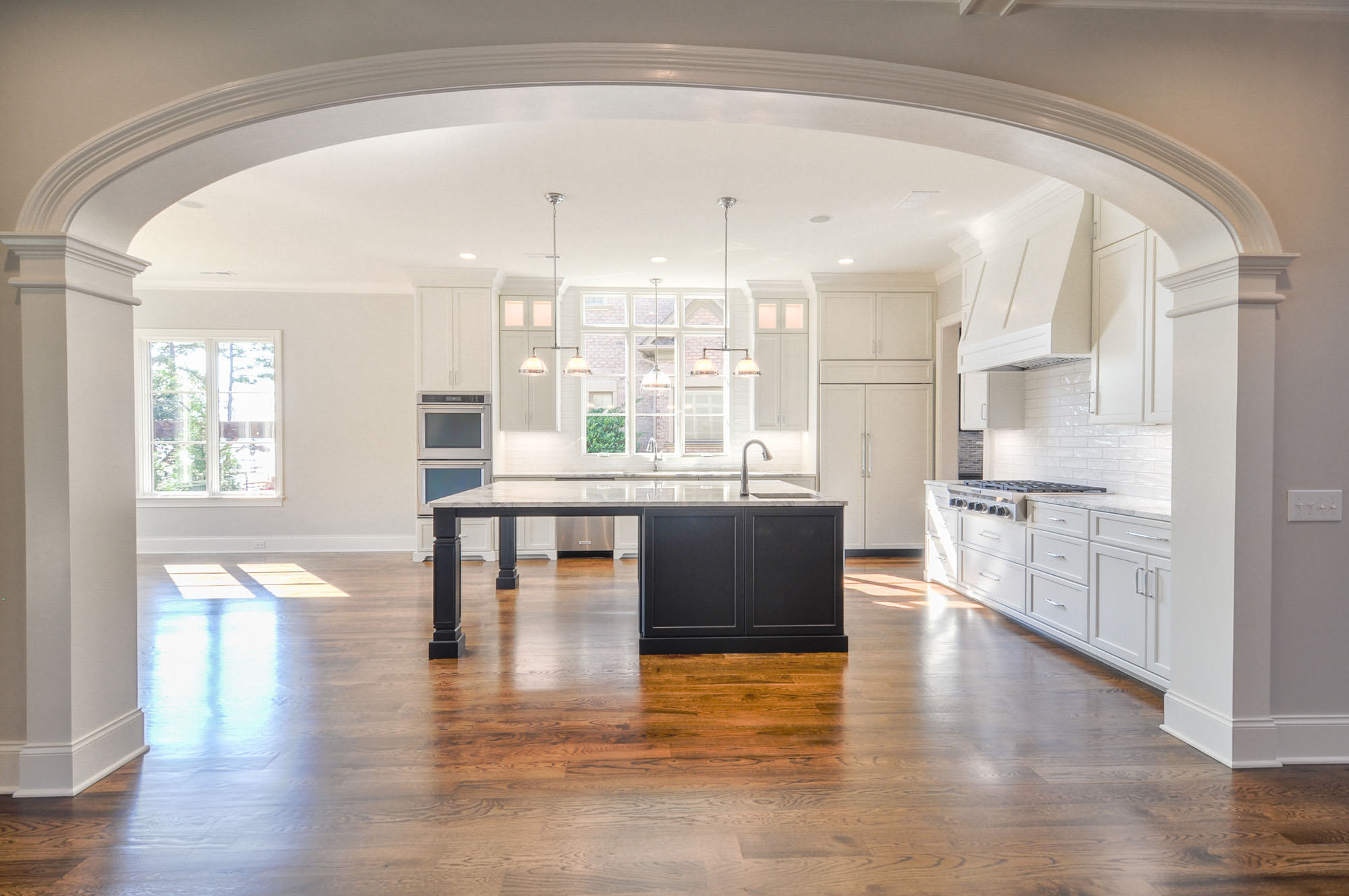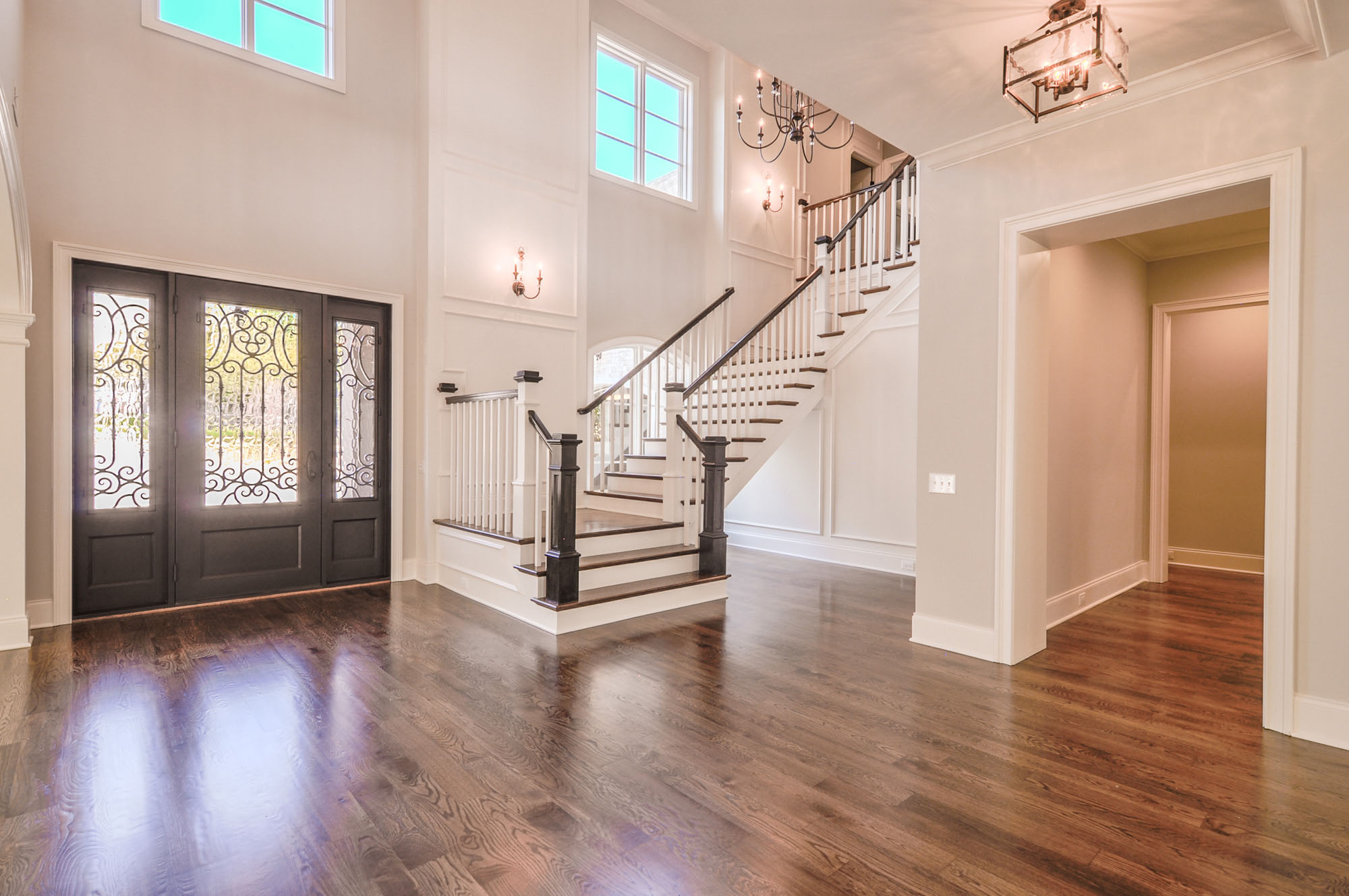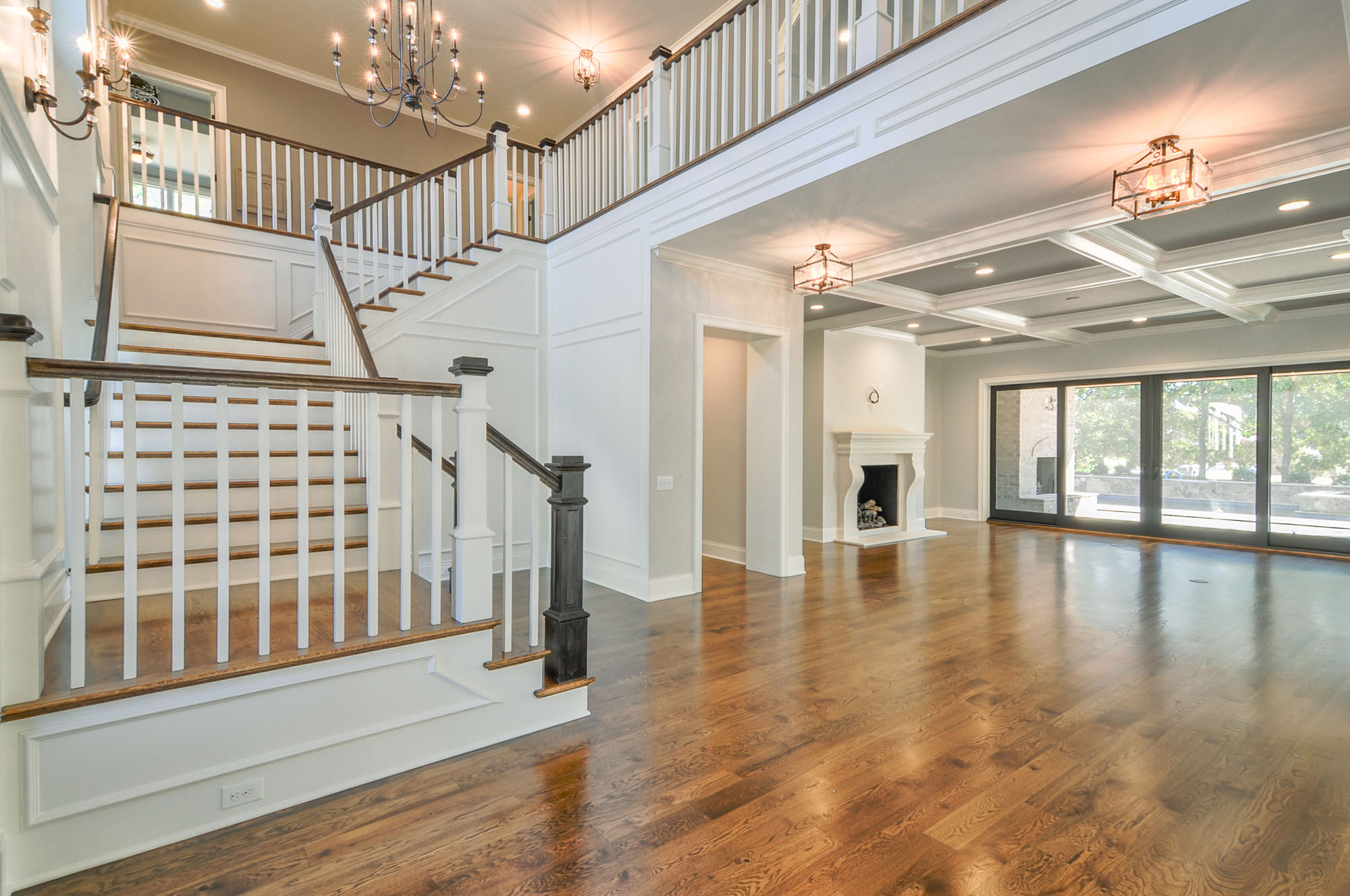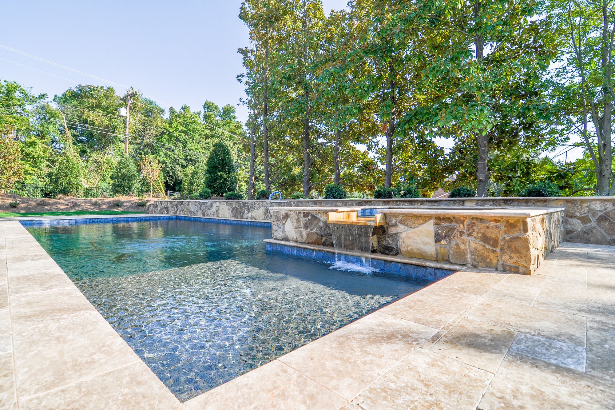 The exterior of this home includes several natural materials including wood, brick, and stone. This Traditional Custom home is a very spacious floor plan with a study, built-in bar, screened-in porch and a pool.