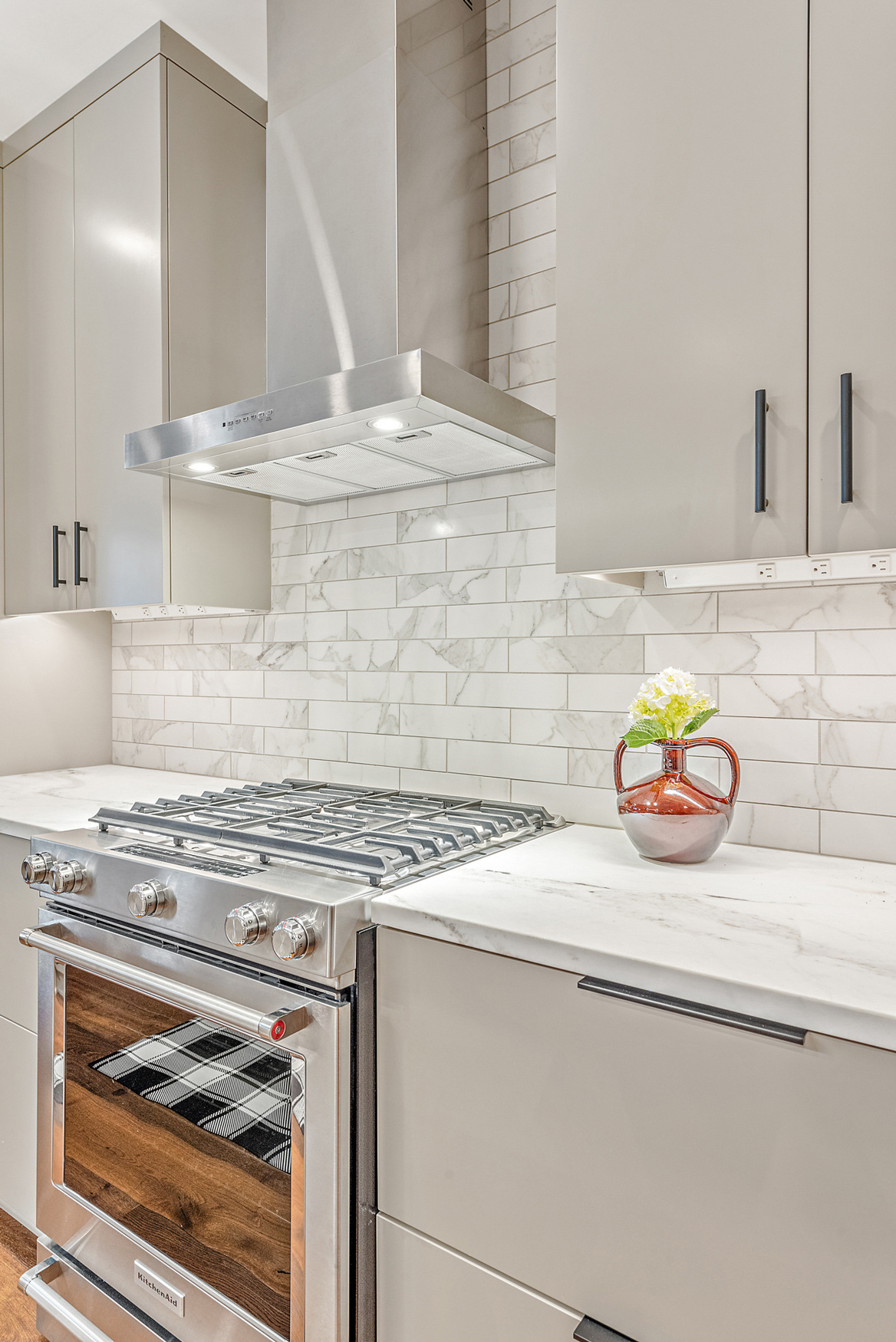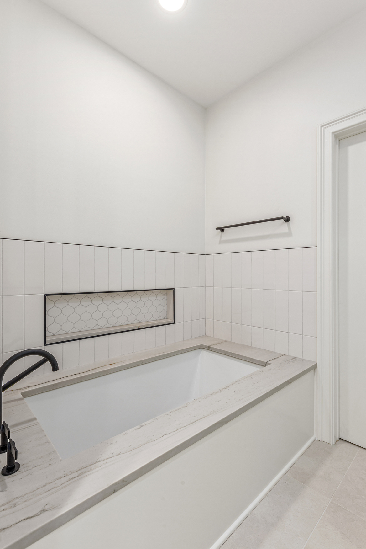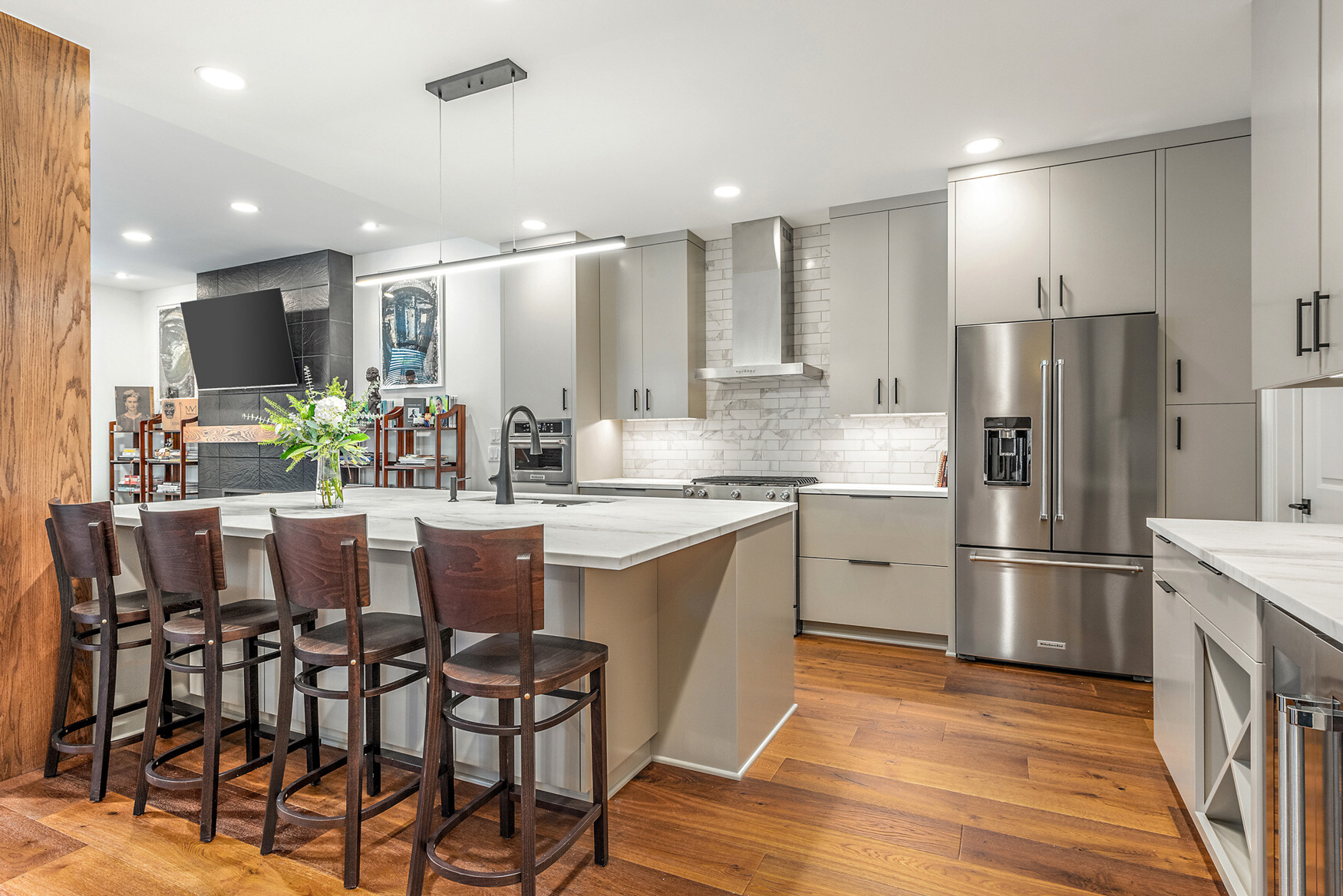 These homeowners were looking to transform their recently purchased Uptown condo to be more suitable for their downscaled lifestyle. The structural column was part of the condo's structure and needed to be incorporated in the design. The previous design of the condo was outdated, especially the master bath, and they wanted a space that was more functional for just the two of them and suitable for their age and restraints, while still fitting their aesthetic.